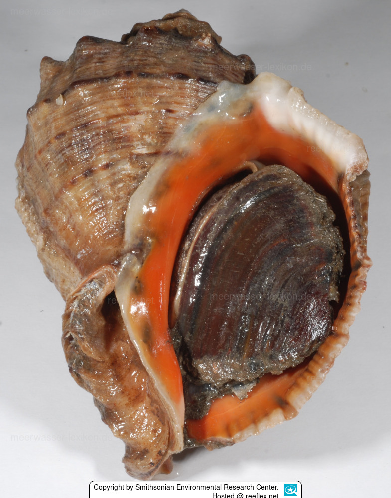 The generic name "Rapana" comes from Latin, "Rapa" means turnip.