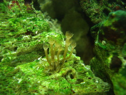 Zusätzlich benötigen die Polypen weitere Nahrung wie zum Beispiel Zooplankton (z.B. Rädertierchen), Nauplien und feinstes Flockenfutter usw. Unter feinstem Granulatfutter wachsen sie besonders schnell & bilden sehr lange Röhren (UltraSeafan in meinem Fall; Anm. R. Bogusch).