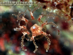 Sofern sie stark beleuchtet werden, bilden die Tentakel und die Mundscheibe eine grün fluoreszierende Farbe aus (Anm. R. Bogusch).