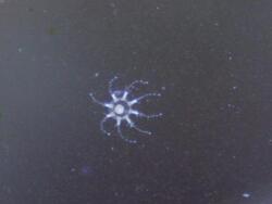 Da das anfängliche Medusenstadium nur wenige Millimeter (etwa 2 mm) beträgt, wird dieses Stadium in den zum Teil sehr großen Meeresaquarien übersehen.