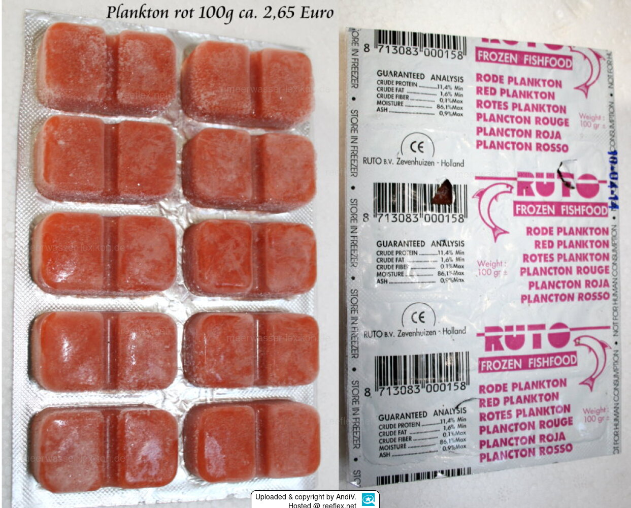 It is quite common that vitamins, salmon oil (Omega-3 fatty acids) and also algae can be added, therefore the information given above is surely slightly different from red plankton to red plankton.