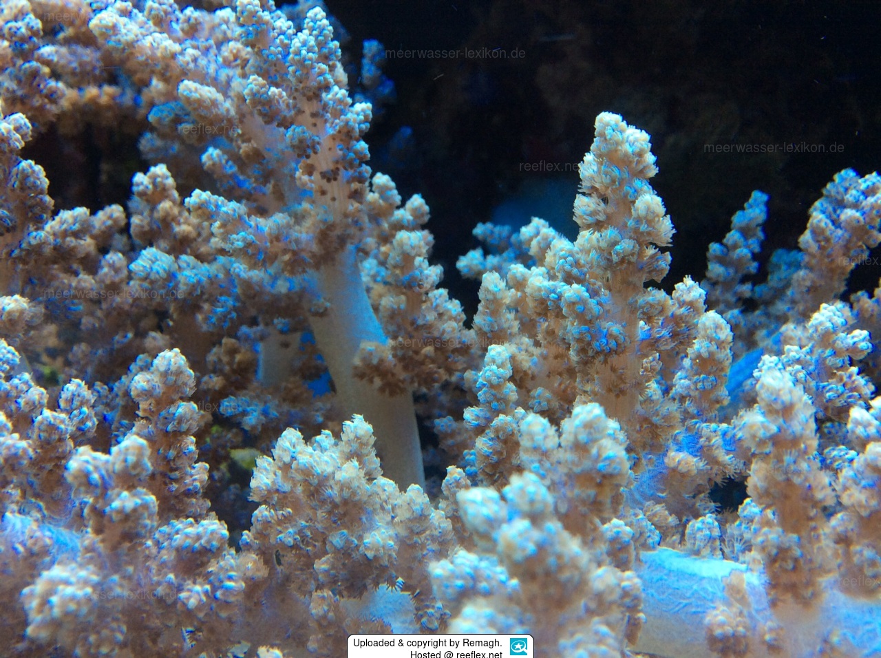 Eingestellt zur ID von Remagh mit folgendem Hinweis: Hallo, ich habe hier eine Bäumchenkoralle welche ich selbst nicht exakt bestimmen kann. Auf Grund der Bilder hier im Lexikon komme meines Erachtens maximal 3 in Frage. Capnella sp. 02 - Bäumchenweichkoralle, Litophyton arboreum - Brokkoli-Weichkoralle, Oder Mein Favorit wegen der Optik und dem Gefühl beim anfassen Dendronephthya hemprichi - Hemprichs Bäumchenkoralle, Stachelige Prachtkoralle Zum Tier selbst: Bilder so gut es ging sollen die Optik verdeutlichen. Es fast sich kratzig / stachelig an, es pumpt sich über den Tag hinweg auf und fällt in der Nacht zusammen. Ca. 20% des Tagesvolumen. Wenn es gestresst wird / angefasst wird verschließen Sie die kleinen Blüten und es schrumpft in sich zusammen je länger es meiner Berührung ausgesetzt ist. Eine Vermehrung durch abwerfen von Ästen könnte ich nicht beobachten (12monate), nur Wachstum in voller Größe füllt es aktuell einen Bereich von Ca 25 x 20 x 20 cm etwa es hat sich also seit dem Kauf verdoppelt oder mehr.